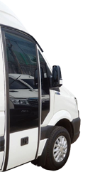 유사 차종의 슬라이딩 중문구조에 비해 트라베리의 앞문 스윙도어는 운전자가 승하차를 통제할 수 있어 안전한 셔틀버스 운행이 가능합니다.